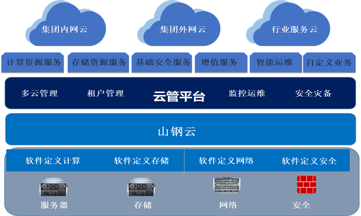 “山(shān)鋼雲”是基于開(kāi)放、先進的OpenStack雲平台基礎框架,采用KVM、SDN、VXLAN等虛拟化、雲計(jì)算(suàn)、網絡管理(lǐ)相關技(jì)術(shù)進行(xíng)整體(tǐ)構建的企業級雲平台,通(tōng)過統一雲管系統,全方位為(wèi)山(shān)鋼集團信息化建設提供雲資源服務,促進信息化實施的模式轉變,為(wèi)山(shān)鋼集團産業協同、數(shù)據共享提供有(yǒu)力的平台支撐,推動企業的數(shù)字化轉型,帶動企業模式創新。同時(shí),以企業雲平台為(wèi)基礎推動大(dà)數(shù)據平台、移動互聯平台、工業互聯網等平台的研發應用,利用IDC資質為(wèi)社會(huì)提供高(gāo)附加值的雲服務,成為(wèi)新的經濟增長點。