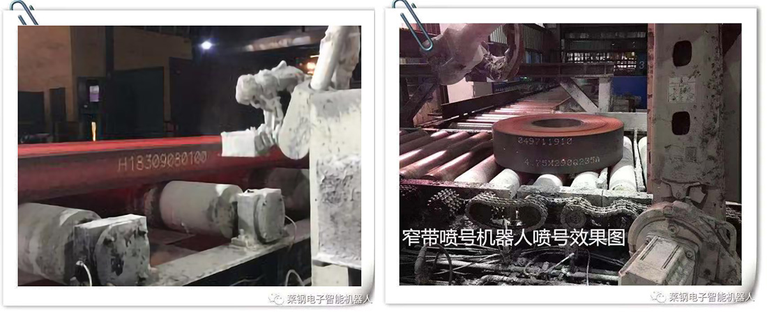 噴碼标記機器(qì)人(rén)系統由六軸工業機器(qì)人(rén)、塗料輸送系統櫃、專用噴槍、定位檢測系統及信息系統組成,噴号數(shù)據可(kě)通(tōng)過MES系統或定制(zhì)二級系統自動傳送,噴号位置自動檢測,機器(qì)人(rén)自動噴号、清洗噴頭,達到替代人(rén)工繁瑣、重複且帶有(yǒu)一定危險性的噴号工作(zuò)。